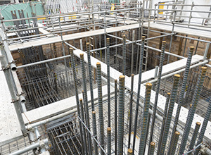 鉄筋工事とはビルやマンション等の建築物、橋やトンネル、高速道路等の構造物等のコンクリートで覆われた建物の中に入る、“骨組み”となる鉄筋を、網目状に組む仕事です。その網目状に組んだ骨組みを取り付ける為の工事を行う者が「鉄筋工」「鉄筋屋」と呼ばれています。